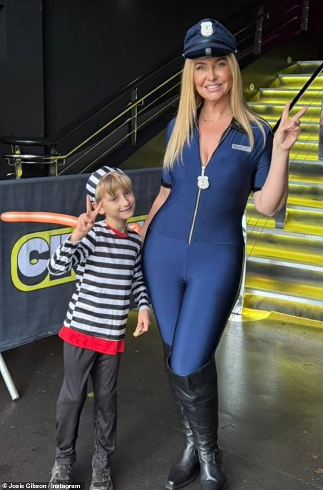 La presentadora de televisión, de 40 años, posó como una tormenta con su hijo Reggie, de siete, mientras celebraban. Víspera de Todos los Santoscon Josie vistiendo un catsuit inspirado en un uniforme de policía junto con una gorra de policía y botas modernas, mientras su hijo lucía un traje de prisionero.