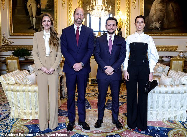 El Princesa de Gales lucía radiante hoy cuando se unió al glamoroso grupo de Jordan. La princesa heredera Rajwa en el Castillo de Windsor.