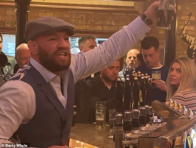 McGregor puso una invitación abierta a sus seguidores para unirse a ellos en el pub y fue fotografiado vertiendo pintas detrás de la barra