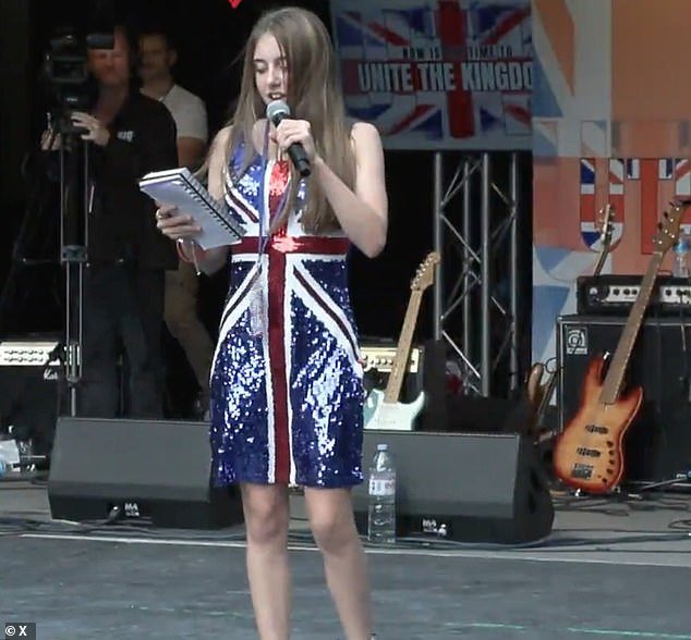 Una adolescente prohibió la escuela después de que los maestros le dijeron que no podía usar un vestido con la bandera de la Unión Jack le dijo a una multitud de más de 110,000 manifestantes reunidos Londres que ‘la cultura británica también importa’.