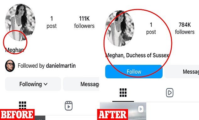 Meghan agregó a la duquesa de Sussex a su nueva cuenta de Instagram, y sus seguidores pasaron de 111.000 a 784.000 en un día.