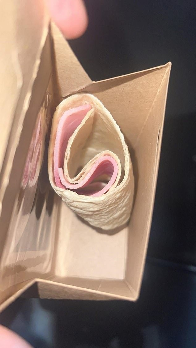 Un padre se enfureció después de que su hijo compartiera una foto de su almuerzo escolar: un wrap con una escasa loncha de jamón.