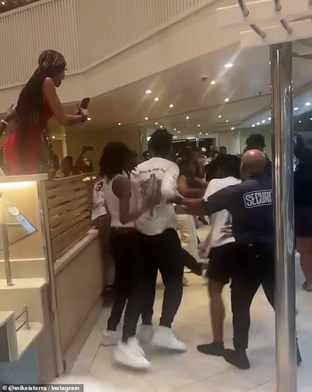 Los golpes aterrizaron con zapatos y teléfonos volando por el suelo. Muchos espectadores hicieron que sus teléfonos fuera grabando la pelea mientras uno gritaba: “¿Dónde está la seguridad?”