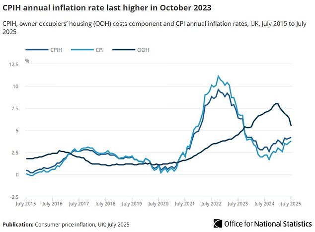 Reino Unido inflación Rose más de lo esperado el mes pasado cuando la demanda de viajes de verano subió las tarifas aéreas y los precios de los alimentos continuaron subiendo, las cifras oficiales revelaron hoy.