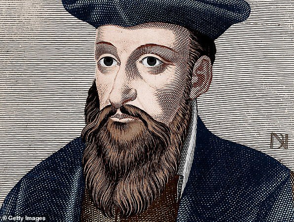 La escritura en las estimadas Les Profés, el astrólogo francés Nostradamus, emitió una serie de predicciones sombrías para el año siguiente, incluidas las ‘guerras crueles’, los desastres naturales y el regreso de la peste (Nostradamus en la foto)