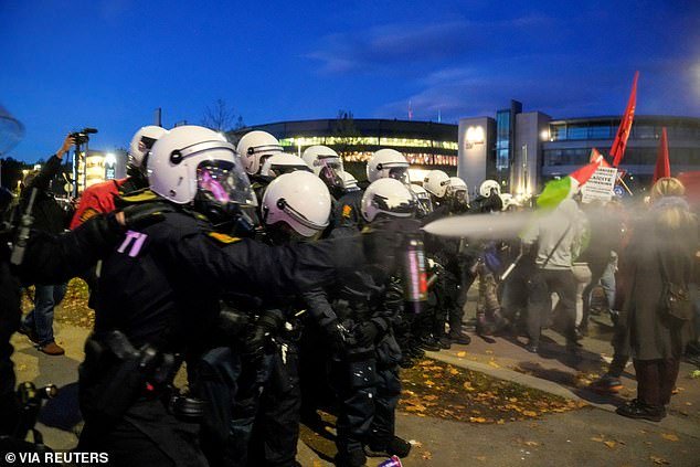 La policía noruega lanzó gases lacrimógenos contra manifestantes pro palestinos el sábado por la noche.