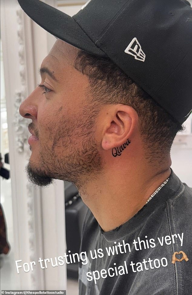 El jugador de 25 años fue fotografiado junto a la estrella de Billboard en el Apolo Tattoo and Piercing Studio, con sede en California. Las imágenes de la cuenta de Instagram de la tienda también mostraron que la estrella de Inglaterra había agregado la palabra Qiava, el segundo nombre de Saweetie, en su cuello detrás de su oreja izquierda.
