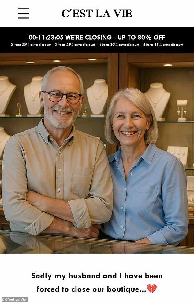 Anuncios recientes de C’est La Vie, que afirmaba tener su sede en Colmore Row, Birmingham, incluso les dijo a los clientes que el “amado esposo” de Eileen, Patrick, había muerto y que estaba cerrando el negocio con un desgarrador 80 por ciento de descuento en el 80 por ciento.