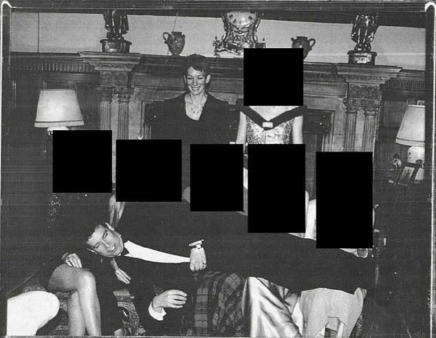 El ex príncipe Andrés fotografiado acostado sobre cinco mujeres. Se desconoce el contexto de la fotografía (Maxwell en la última fila, izquierda)