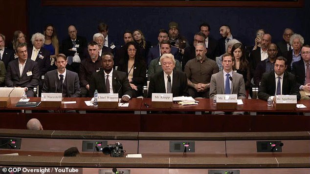 George Knapp, un reportero de investigación jefe de Klas-TV en Las Vegas, quien destacó una búsqueda de décadas de la historia de UAP a través de documentos gubernamentales y cuentas de testigos, también está en la audiencia que revela discrepancias en las narrativas oficiales.
