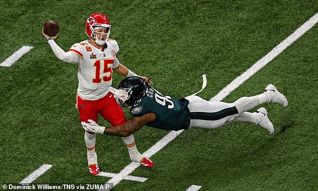 La cabeza de Patrick Mahomes se estrelló contra el suelo después de la apariencia de Jalen Carter en el Super Bowl