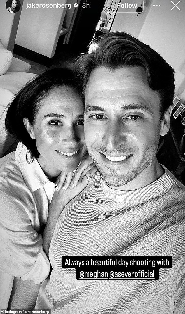 El Duquesa de Sussex43, fue visto posando para una selfie con el camarógrafo de moda con sede en Nueva York Jake Rosenberg, mientras la pareja filmó nuevo contenido para promocionar la marca.