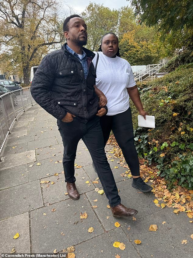 Lucius Njoku llega al Tribunal de Magistrados de Chester con su esposa para ser sentenciado por fraude