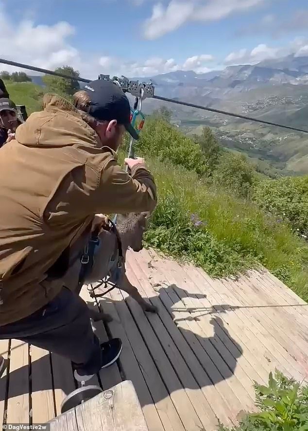 Se escucha a la gente reír cuando el trasero se apresuró hacia la tirolesa, que, según los informes, tiene más de 100 metros de largo (328 pies)