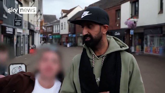 En un video que circulaba en las redes sociales, el propietario del negocio local Zahin, de 32 años, estaba siendo entrevistado por Sky News sobre la división en la ciudad sobre actitud a los solicitantes de asilo.