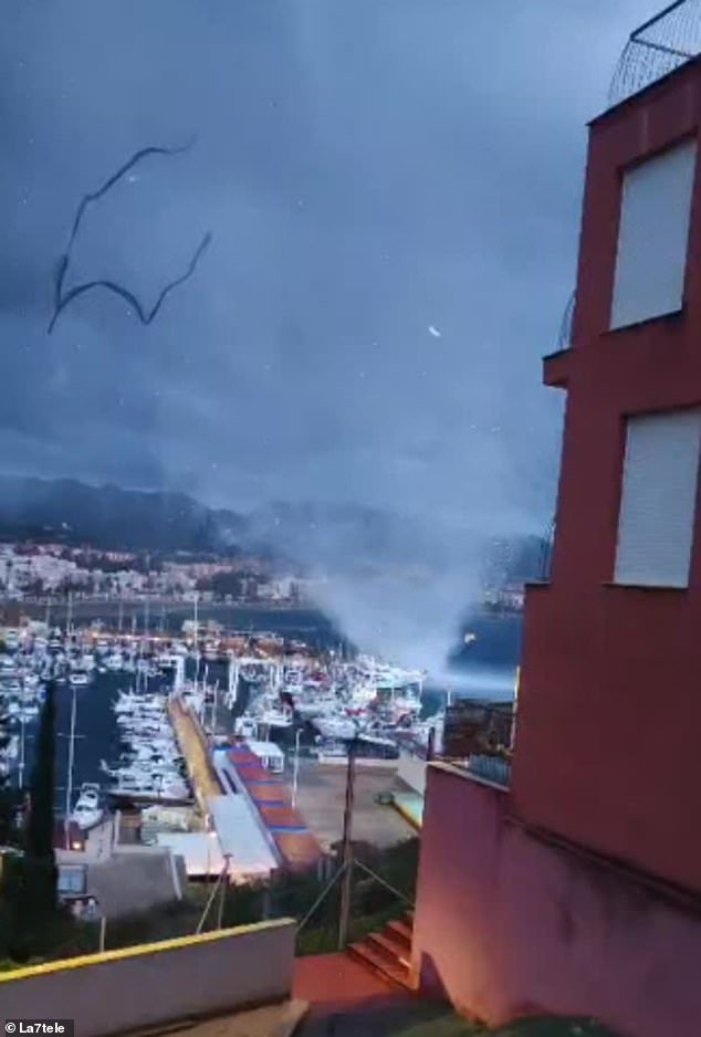 Una tromba marina se ve en imágenes que arrasan un puerto en un centro turístico español después de que una inundación dejara al menos una persona muerta.