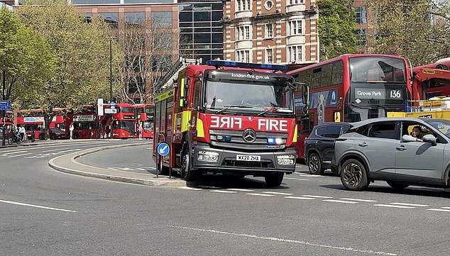 El camión de bomberos no pudo pasar hasta que la policía llegó a la escena e intentó mover al grupo. MailOnline se ha acercado al Policía metropolitana por comentario.