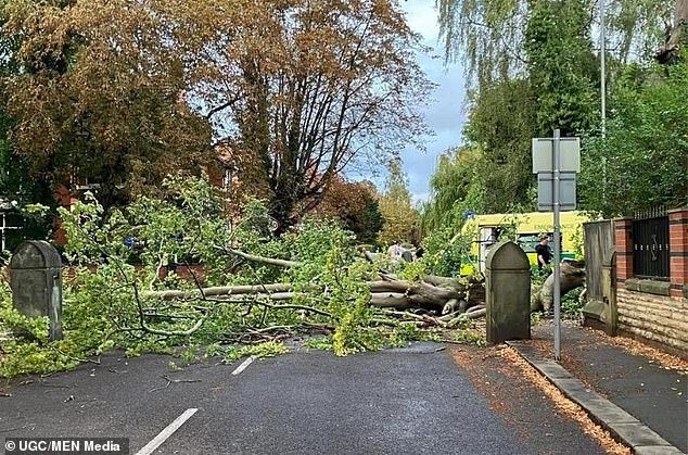 Un portavoz dijo: ‘Alrededor de las 7.15 p.m., el sábado 30 de agosto, nos llamaron para informar que un árbol había caído sobre una mujer en Barlow Moor Road, Didsbury.