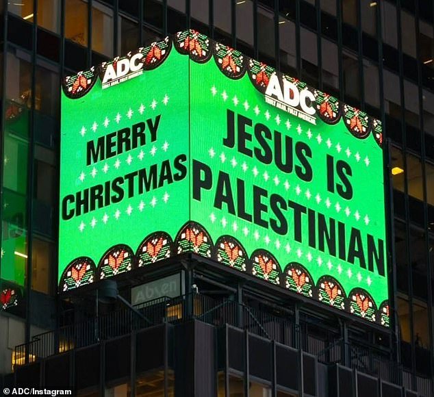 El Comité Antidiscriminación Árabe-Estadounidense (ADC) lanzó una controvertida campaña de vallas publicitarias en el popular lugar turístico de la ciudad de Nueva York antes de Navidad en un intento de crear conciencia sobre la guerra de Israel en Gaza.