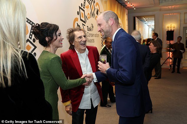 El príncipe William hizo reír a Ronnie Wood y su esposa Sally el miércoles por la noche, mientras conversaba con la pareja durante los Tusk Conservation Awards 2025 en el Hotel Savoy de Londres.