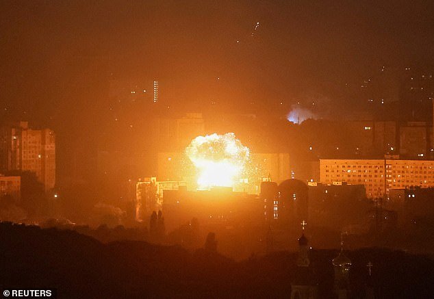 Se ve una explosión de un dron sobre la ciudad durante una huelga de aviones no tripulados rusos, en medio del ataque de Rusia contra Kiev el 30 de julio de 2025