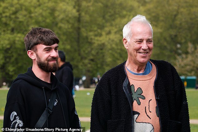 El antiguo anfitrión de Strike It Lucky, de 72 años, con un jersey de punto de herejía de £ 165, miró y sonrió cuando cientos de fumadores de marihuana se reunieron para el rally anual 420 Pro Drugs.