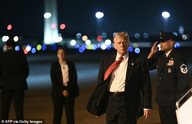 El presidente de los Estados Unidos, Donald Trump, sale de Air Force One cuando llega al Aeropuerto Internacional de Palm Beach en West Palm Beach, Florida, el 14 de marzo