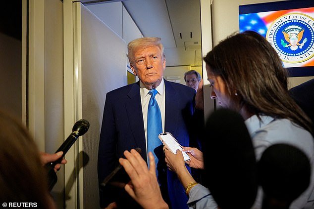 Trump espetó mientras se comprometió con los periodistas a bordo de la Fuerza Aérea una después de un fin de semana de golf en Florida.