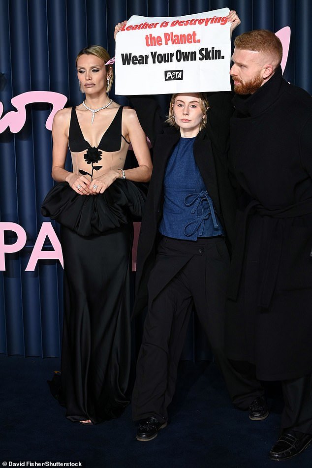 Los activistas por los derechos de los animales estuvieron junto a la actriz Wallis Day mientras ella posaba para las fotografías antes de la ceremonia.