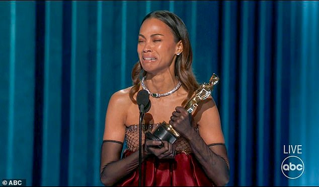 Actriz Zoe Saldana fue trasladado hasta las lágrimas después de ganar su primer Oscar para NetflixEmilia Pérez, pronunciando un discurso emocional.
