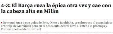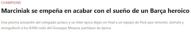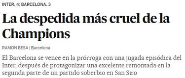 “La despedida más terrible de la Liga de Campeones. Barcelona expira en la extensión, con una obra episódica, después de tocar un La mejor reimpresión En la segunda parte de un La fiesta subbiana en San Chiro ”.