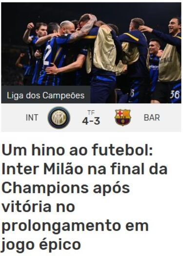 “Una canción para el fútbol: Después de ganar un juego épico en la extensión, la Liga de Campeones Inter -Milán llega a la final. ¡La corbata termina con trece goles contra Barcelona! Narasuri regresó a la final de una Liga de Campeones dos años después. “