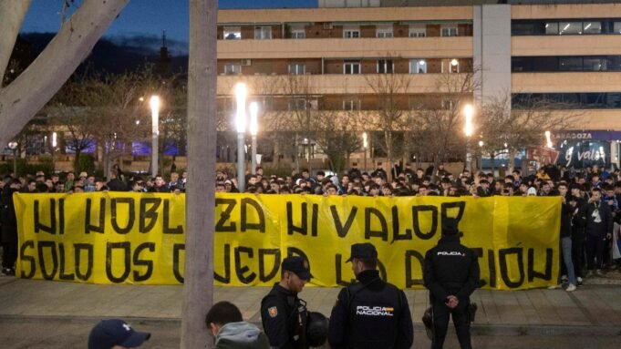 Alrededor de 400 fanáticos se han reunido frente a la entrada de la caja del Presidente de La Romerata de La Romerata antes de la competencia entre Zaragosa y Córdoba reales, oponiéndose a la actual gestión deportiva del Arakonis Club, y dijo a cuatro entrenadores esta temporada en pleno otoño, a la situación extrema del equipo.