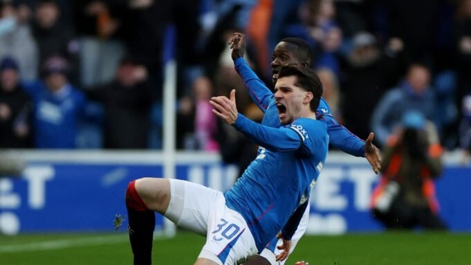 Fiesta Rápidamente se puso del lado de los protestantes. El hijo de Giga, Ioannis Hagi, marcó para el Rangers en el minuto 7.. El ex jugador del Alavés Ruskin remató un buen partido con un zurdazo raso desde la frontal del área que robó el balón en el centro del campo y superó a Schmeichel, que lleva años siendo observado. Necesita un estiramiento. El disparo de Hagi no fue demasiado fuerte, pero se marchó fuera del alcance del portero danés. a la pelota.