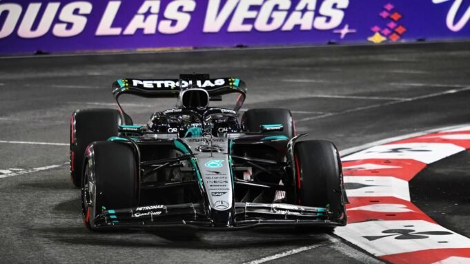 Pista mojada y máxima tensión en Las Vegas durante la última sesión de entrenamientos libres. Es una hora muy interesante que compensa la inconsistencia de los Libres 2, que se ve truncada por un par de banderas rojas. Russell lidera el camino por delante de Verstappen (0,227) y Alphonse (0,821). Los entrenamientos sobre asfalto fueron mejorando a medida que avanzaba el tiempo, pero tuvo sus más y sus menos. Había manchas de agua y la buena lluvia no paraba. En ese ambiente se desató una batalla multifacética por quién tendría el mejor tiempo y parecía ser de Max todo el tiempo, pero en el último intento ganó Russell por miedo al holandés y el tráfico se vio afectado.