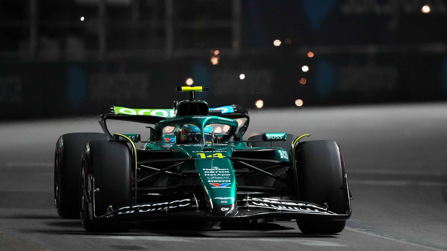 LAS VEGAS, NEVADA - 20 DE NOVIEMBRE: Fernando Alonso de España conduce el Mercedes Aston Martin F1 Team AMR25 (14) durante la práctica previa al Gran Premio de F1 de Las Vegas el 20 de noviembre de 2020 en el Circuito del Strip de Las Vegas. Alex Bierens de Haan/Getty Images/AFP (Alex Bierens de Haan / GETTY IMAGES NORTEAMÉRICA / AFP vía Getty Images)