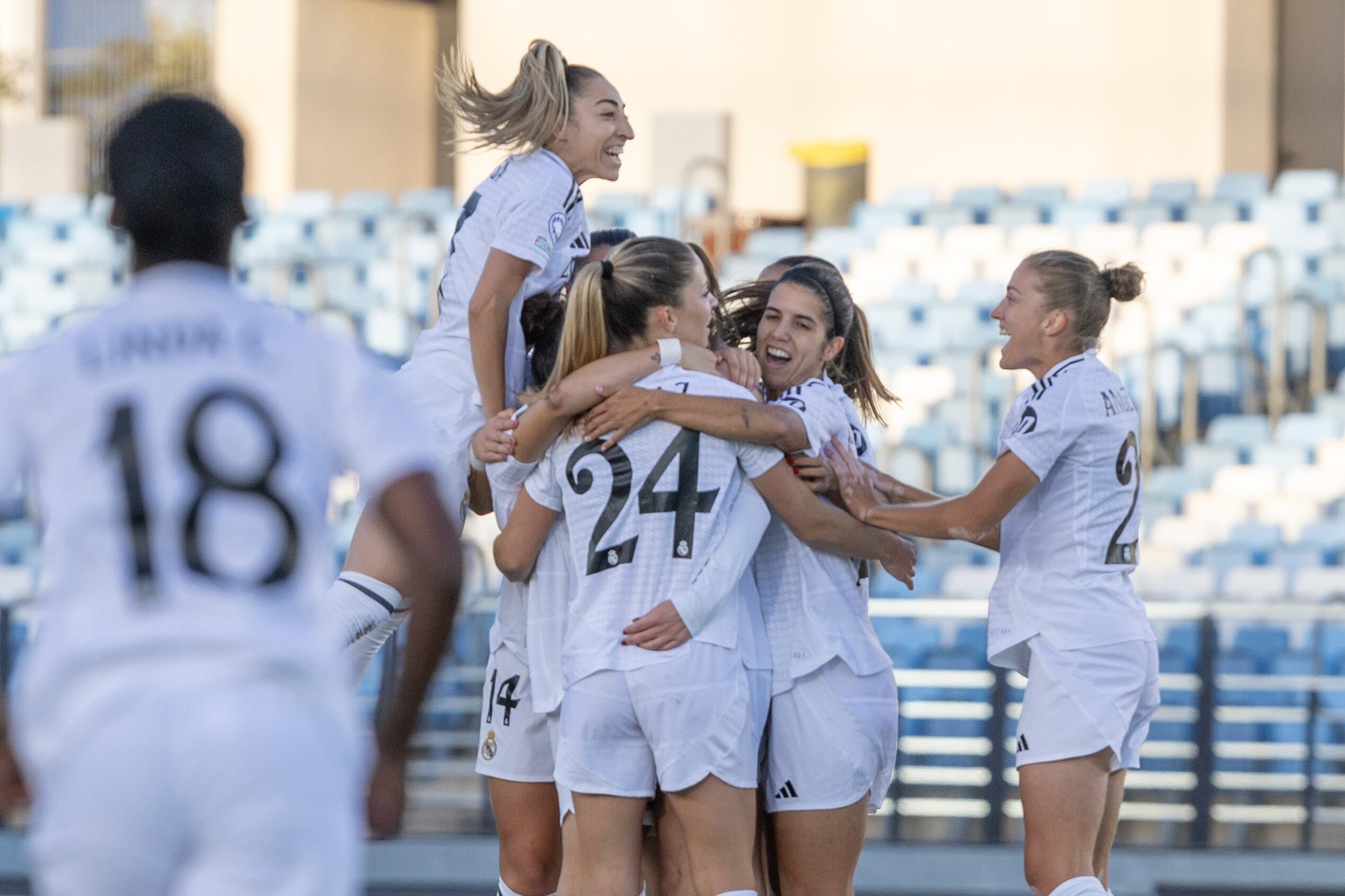 Once del Real Madrid CF (1-3-5-2): masa; Lachrer, Rocío, María Méndez; Sheila García, Tere Abelleira, Leupols, Angeldahl, Olga; Moller y Brune.