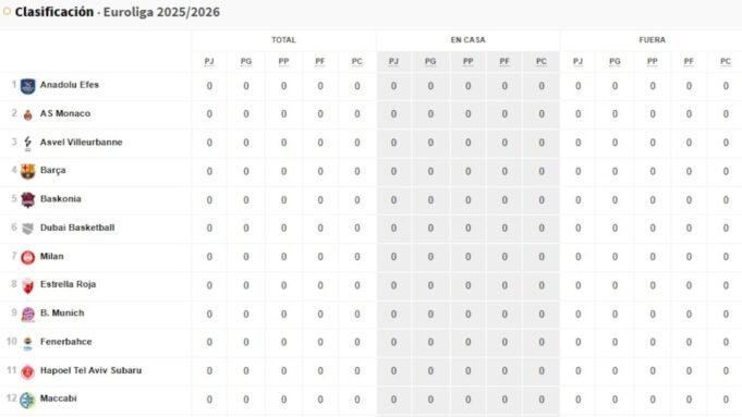Finalizada la jornada 4 de la Euroliga 2025-26. Los equipos mantienen la ilusión de conquistar el trono de Europa, arrebatando el trofeo de la máxima competición continental a los principales favoritos y a uno de los vigentes campeones, el Fenerbahçe. Real Madrid, Valencia Basket, Barcelona y Baskonia son los cuatro equipos españoles y quince equipos que intentan colarse entre los ocho primeros (jugar hasta el día 10 de la temporada regular) afrontan la Final Four para hacerlo posible. Todo debe estar decidido; Pero, por ahora, los partidos de la jornada quedan de la siguiente manera (partidos pendientes y resultados finales):
